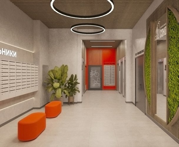 Дизайнерское оформление водной группы. Специальные помещения для хранения велосипедов и колясок. Бесшумные лифты.