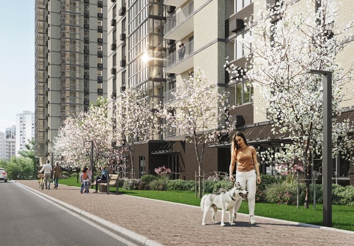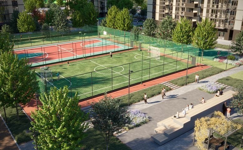 В ЖК выполнен ландшафтный дизайн с многоуровневым озеленением, расположены оборудованные воркаут-зоны, игровые площадки, футбольные поля, волейбольные и баскетбольные площадки, велодорожки.